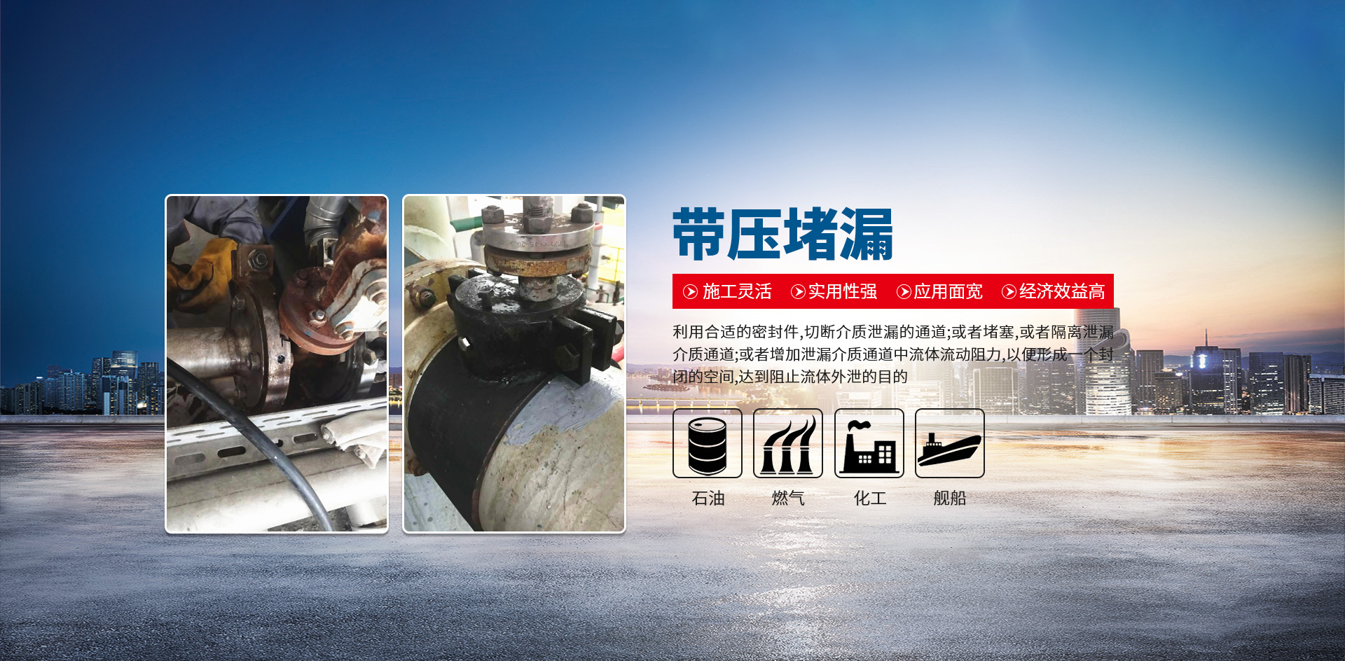 公司擁有堵漏工程技術(shù)專家,施工管理人員及施工技術(shù)工藝和專業(yè)的施工隊(duì)伍,成功解決了石油、化工、冶金、熱電、化纖、供熱、供氣等企業(yè)突發(fā)性泄漏問題,挽回了企業(yè)因泄漏而造成的巨大損失。工程施工已涉足民用建筑、水利水電、市政、橋梁、隧道、煤炭礦山、電力化工、軍工航天、核工業(yè)等行業(yè),工程業(yè)績遍布全國各地。在承接高難度工程和 重點(diǎn)工程中都以工程質(zhì)量保證、安全率高、信譽(yù)好贏得廣大客戶的一致好評。